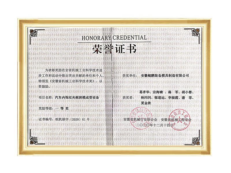 2020年度省機械工業科技進步一等獎