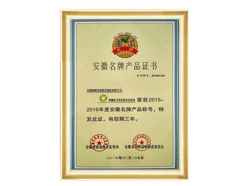 2017翻轉式快換模發泡裝備獲省名牌產品