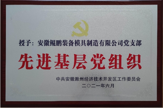 2021年6月28日,6月28日,滁州經開區召開慶祝建黨100周年暨“兩優一先”表彰大會,我公司獲評“先進基層黨組織”。安徽鯤鵬裝備模具制造有限公司黨支部成立以來,堅持創先進、干實事、作先鋒,擔任了開發區模具行業黨建聯盟理事長,并積極指導和帶領公司團委、工會開展工作,獲得了一系列黨、工、團榮譽,有效促進了公司生產經營和發展